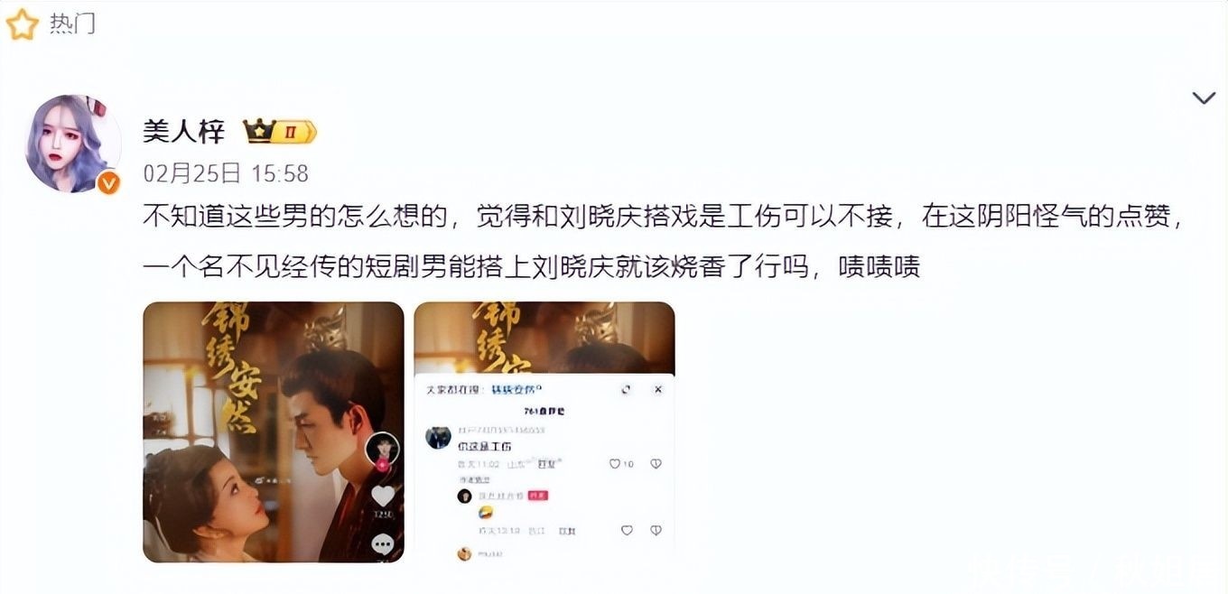 更令人始料未及的是,剧中男配角顾言修竟在社交平台公开为一条颇具争议的博文点赞——“跟刘晓庆对戏堪比工伤”,短短数小时,该动态被转发超百万次,话题迅速登顶热搜榜首。